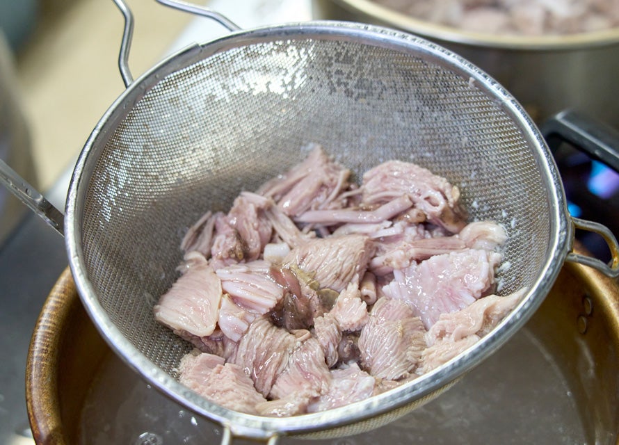 永村さんのぶりわた汁との決定的な違いは内臓の処理。松熊さんはその日水揚げされたぶりの内臓をそのまま使う。内臓の内容物を取り除いたり、熱湯で霜降りをしたりといったところは同じだが、何日も水に浸けて血抜きすることはしない。その理由を「新鮮だから必要ない」と言う。