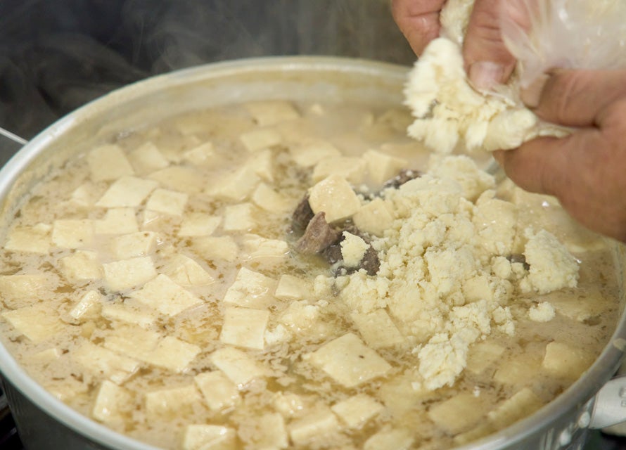 小坂さんの知人が作ってくれたぶりわた汁を実際に食べてみると、これが驚くほど美味だった。熱を加えられたわたが溶けていて、見た目はお世辞にも美しいとは言えない。しかし、口にすると具のおからや味噌と渾然一体となって胃にとろとろと落ちていく。五臓六腑に染み渡る味とはまさにこのことだ、とうっとりした。