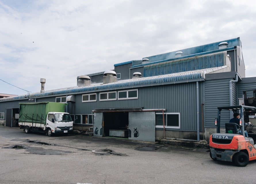 私たちは森さんの案内で「かつお銀座」を歩く。かつお銀座とは、枕崎の新町やえびす町あたりのことで、戦前の全盛期にはかつお節工場がずらりと並んでいたという。かつお節職人の高齢化や後継者不足で工場の数は減ったそうだが、今でも操業を続ける工場からはもうもうと燻煙が上っているし、かつおを運搬するフォークリフトも忙しそうに動いている。森さんは「枕崎では生産から出荷まで、すべての工程が市内で完結しています」と話す。