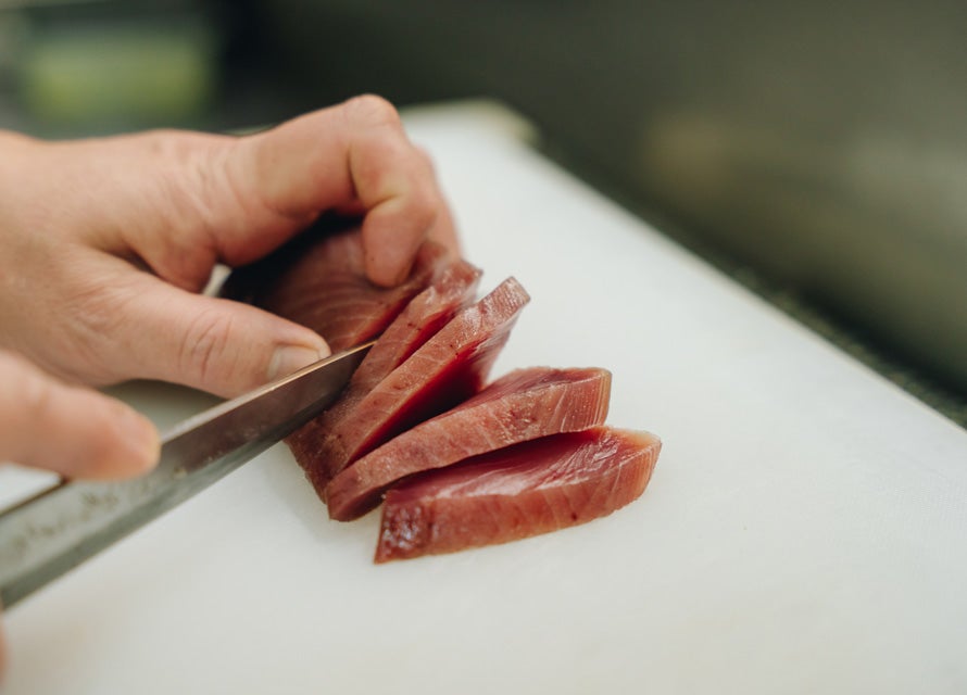 井上「胃袋は酒盗に、心臓や白子などの内臓は味噌煮にします。脂が乗った皮付きの腹の身・腹皮(はらがわ)は焼いても天ぷらにしてもうまい!」