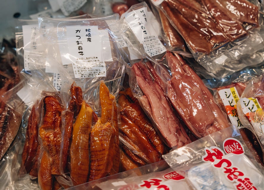 森さんの案内で売店を眺めていると、本枯節のほか、「なまり節」や「新さつま節」といった見慣れないかつお節が並んでいる。「新さつま節はかつおの生ハムのようなものですね。かつお節は奥が深いですよ~!」と森さんは誇らしげだ。
