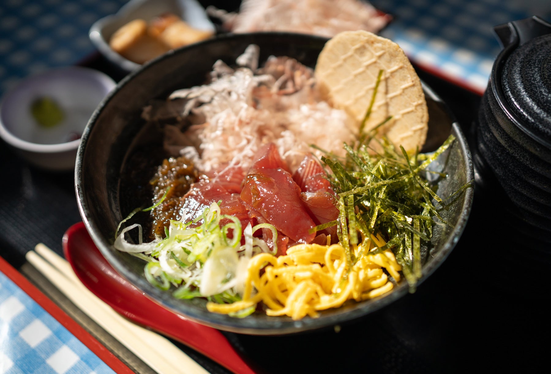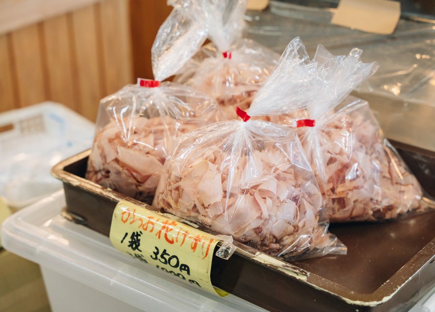 井上さんもまた「かつおはビンタもシッポも食べられて、捨てるところがないですよ」と言う。「身は、刺し身はもちろん、たたきや丼も人気です。枕崎のご当地グルメ『枕崎鰹船人(まくらざきかつおふなど)めし』は、かつおの切り身やかつお節をのせた丼に、かつおで取っただし汁をかけて食べる“かつおづくし”の料理です」